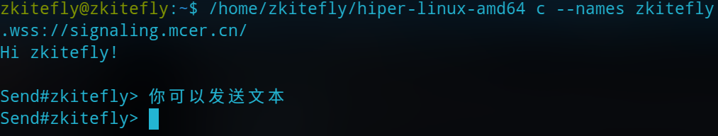 当 CMD/终端 出现 HI <名称> 时,代表可以正常发送消息了
