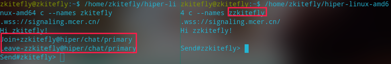 在 Hiper 网络上聊天。他就像是我们的微信群,默认是加入我们的公共网络,也就是公共群,大家可以在此发送文本内容。