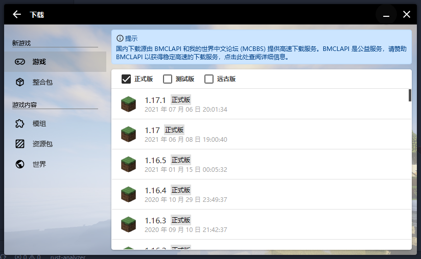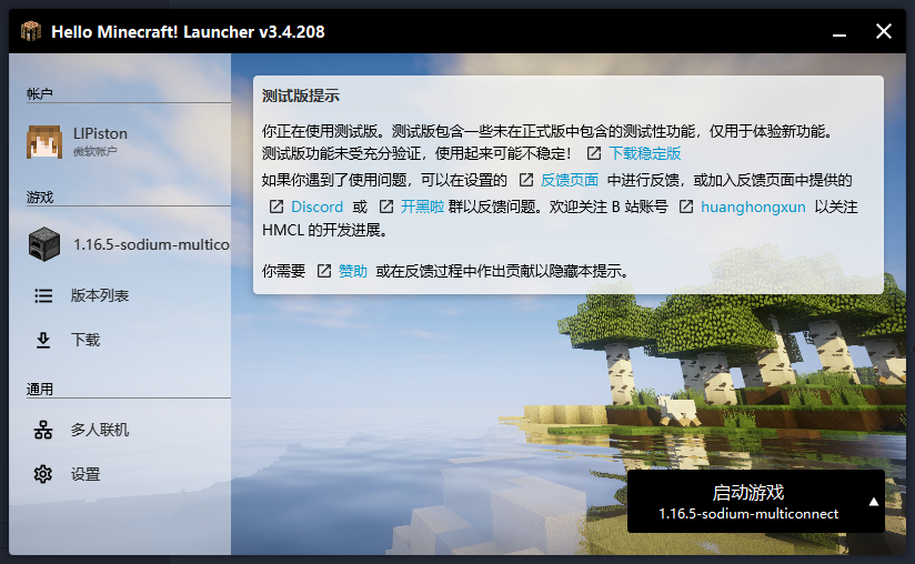 首先 Minecraft 的下载有着 HMCL 就十分的简单