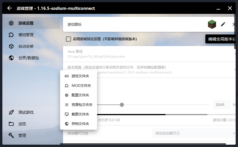在做完版本隔离的设置后,hmcl 的快速打开各个游戏文件夹的功能就会显得十分重要。